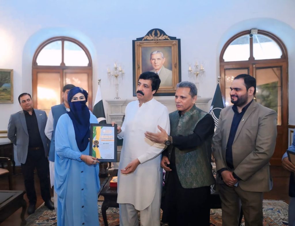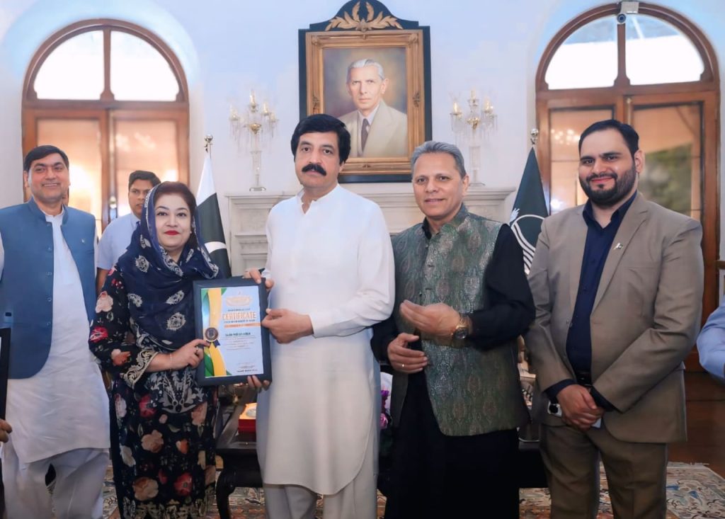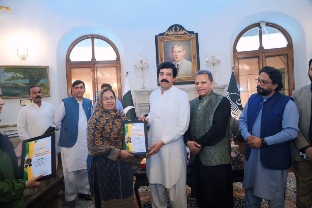 گورنر پنجاب کی جانب سے بھی چیئرمین انٹرنیشنل یونین آف رائٹرز کو اعزازی شیلڈ پیش کی گئی